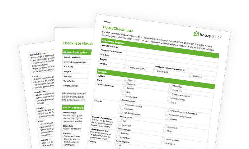Une inspection minutieuse est un long processus. Néanmoins, prenez suffisamment de temps, soyez critique et ne vous laissez pas amadouer par les premières impressions. Une checkliste structure les visites. D'une part, rien ne vous échappe, d'autre part, vous pouvez plus facilement comparer une maison avec d'autres biens. C'est particulièrement utile lorsque vous examinez plusieurs maisons. Vous pouvez télécharger gratuitement notre «Checkliste & astuces pour l’achat immobilier» et l'enregistrer au format pdf ou l'imprimer. Avec la checkliste, vous vous préparez de manière optimale pour la prochaine visite.